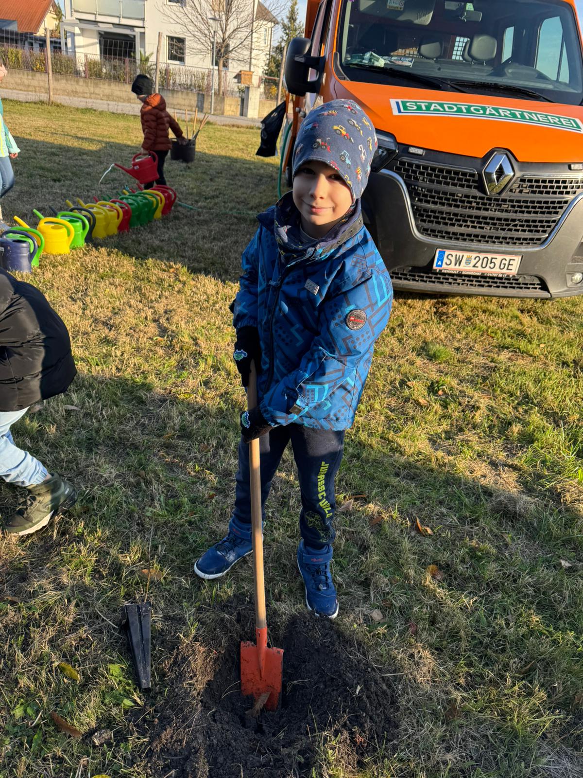 Auch heuer organisierte die Gemeinde für die 1. Klasse wieder das gemeinsame "Bäume pflanzen in Mannswörth". Dabei durften die Kinder ihr eigenes Bäumchen einsetzen und gießen. Abschließend wurden alle Kinder mit einer Jause versorgt. Wir bedanken uns bei der Gemeinde für die tolle Organisation.