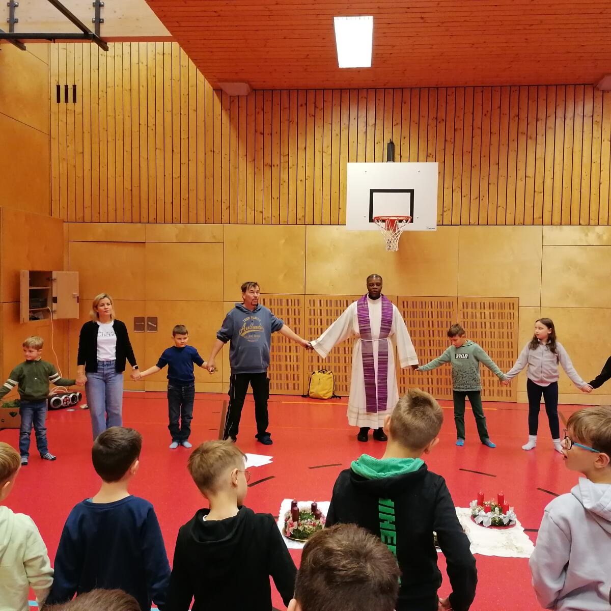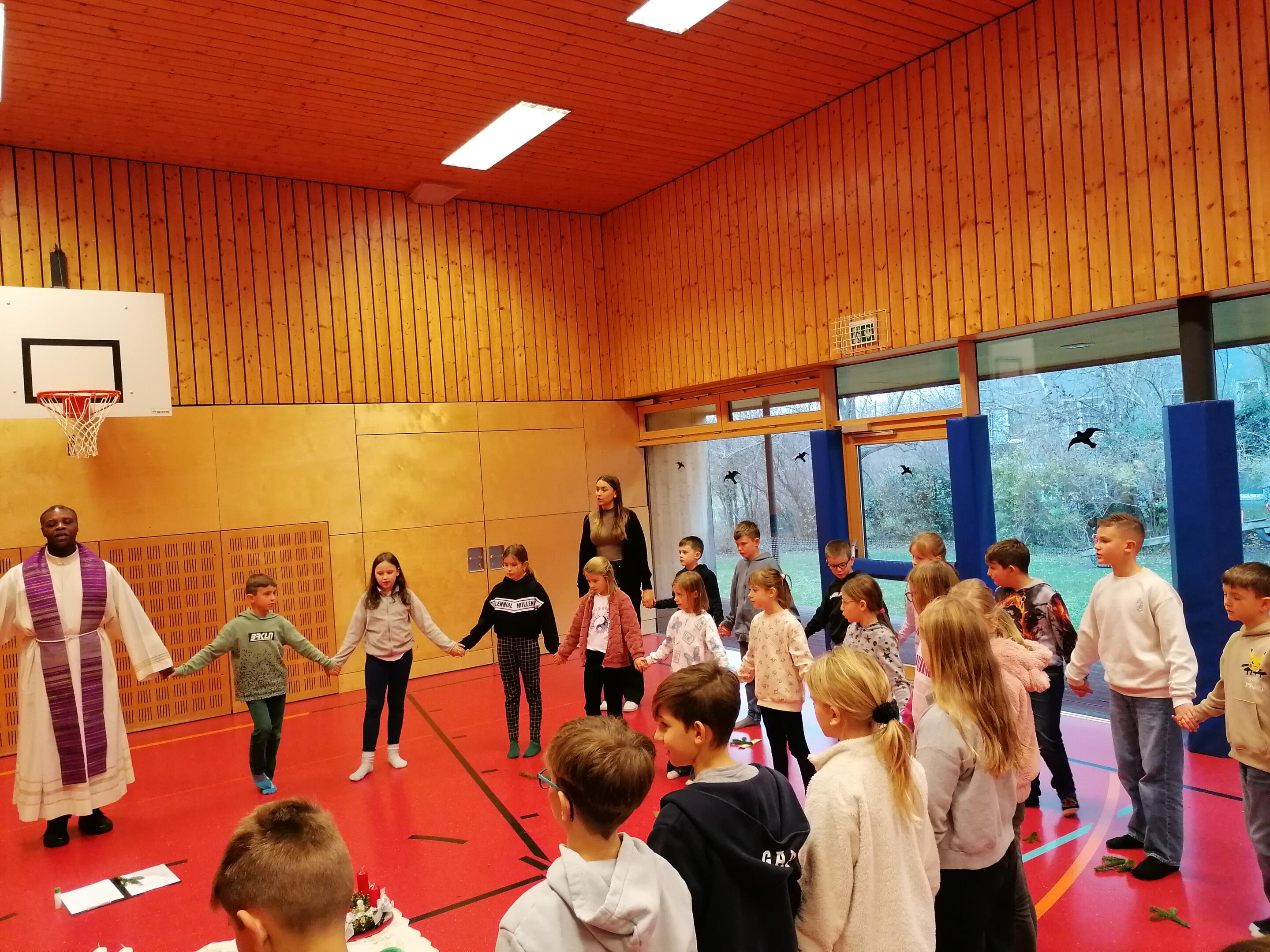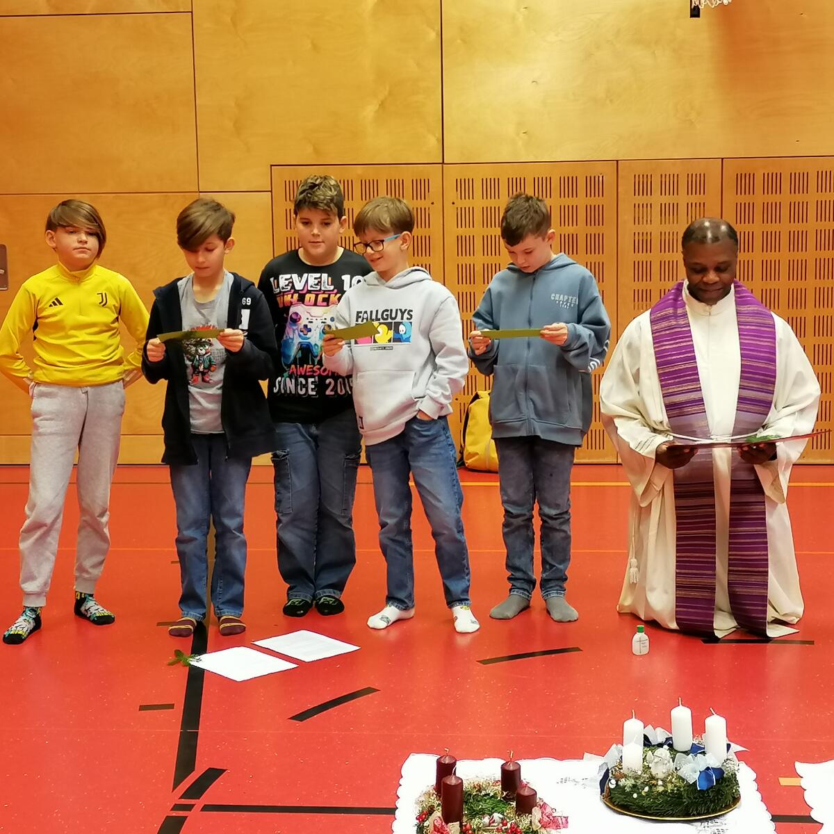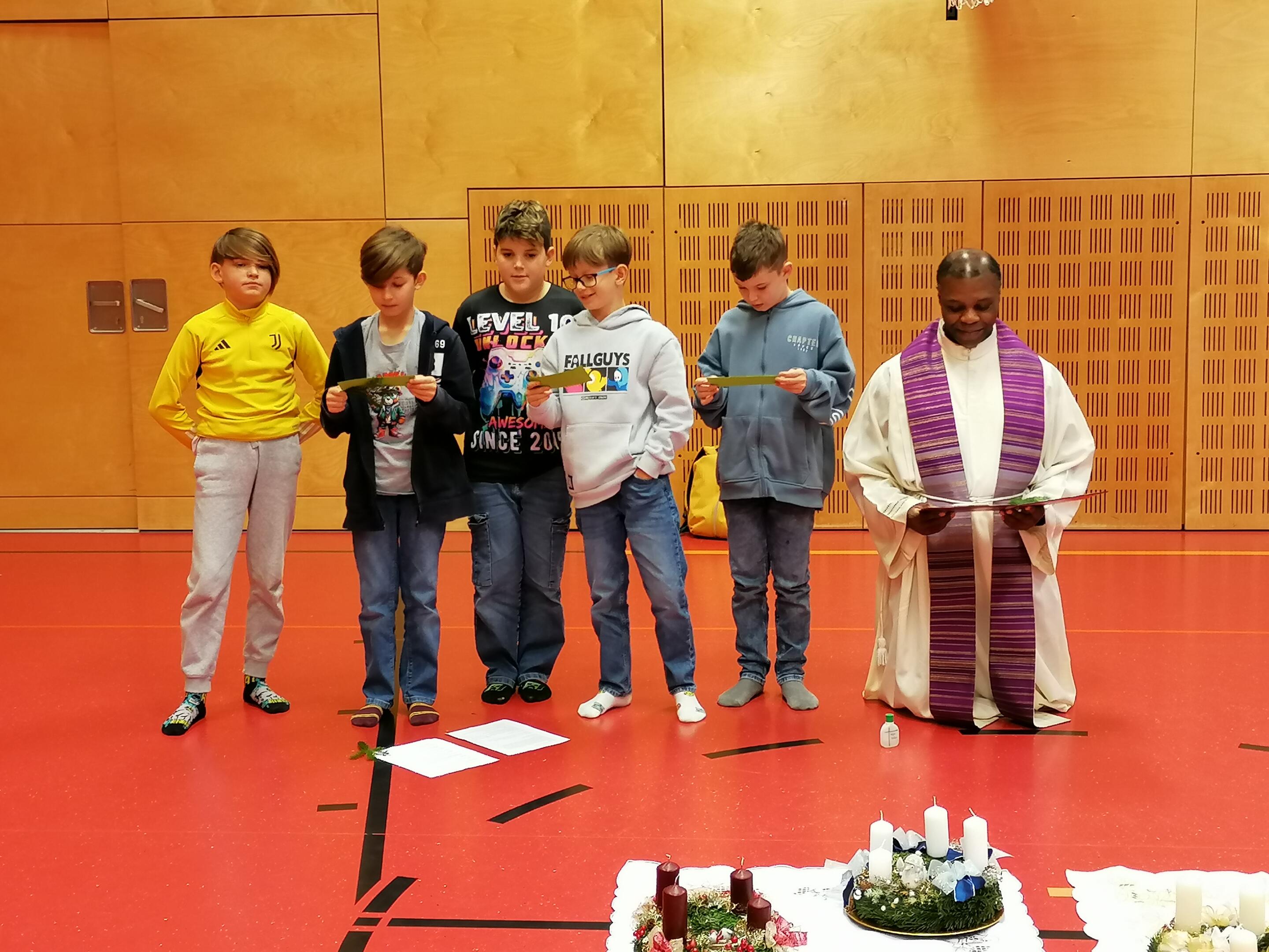 Am 26.11.2025 fand die heurige Adventkranzweihe für unsere römisch-katholischen Kinder statt. Ein großer Dank geht hier an unsere Kollegin Beate Auer und ihre Mutter, die eigenhändig wunderschöne Adventkränze für jede Klasse gestaltet haben. Die Adventkranzweihe wurde gemeinsam von unserem Religionslehrer Reinhard Ruzicka und unserem Kaplan Anthony Adekoye Adeola geleitet. Gemeinsam wurde gebetet und gesungen. Die Segnung der Adventkränze mit Weihwasser durfte natürlich nicht fehlen.