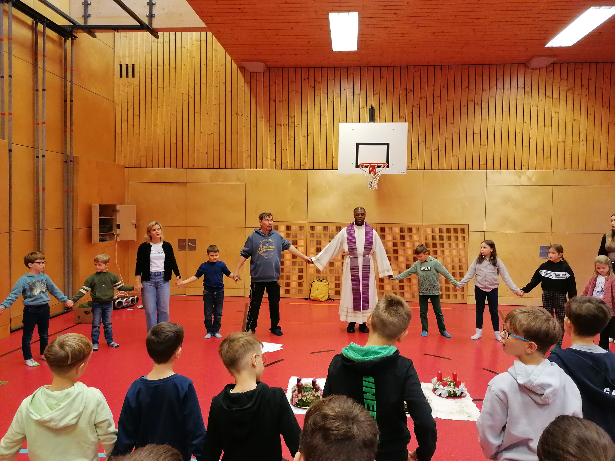 Am 29.11.2025 fand die heurige Adventkranzweihe für unsere römisch-katholischen Kinder statt. Ein großer Dank geht hier an unsere Kollegin Beate Auer und ihre Mutter, die eigenhändig wunderschöne Adventkränze für jede Klasse gestaltet haben. Die Adventkranzweihe wurde gemeinsam von unserem Religionslehrer Reinhard Ruzicka und unserem Kaplan Anthony Adekoye Adeola geleitet. Gemeinsam wurde gebetet und gesungen. Die Segnung der Adventkränze mit Weihwasser durfte natürlich nicht fehlen.